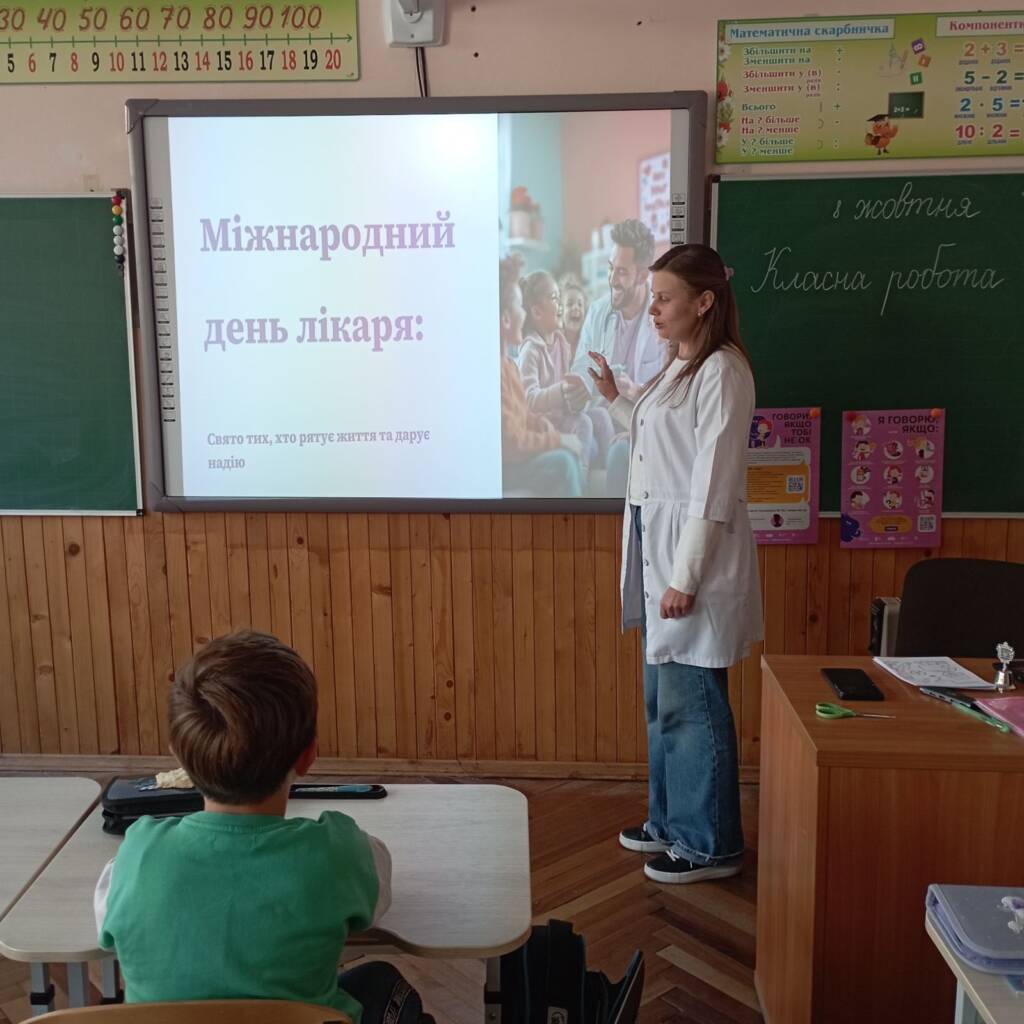 До Міжнародного дня лікаря медсестра школи провела для учнів 2-их класів цікаву та пізнавальну зустріч. Діти переглянули яскраву презентацію про роботу лікарів, пограли у розвивальну гру та розмалювали тематичні медичні розмальовки. 🩺🎨
